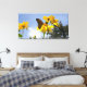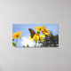 Monarch butterfly on a sunflower against a blue clouded sky on a canvas wrapped frame, brings a touch of beauty and nature to your room.