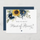Sunflowers Floral Navy Blue Greenery Wedding Will You Be My Maid of Honour Card