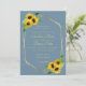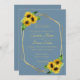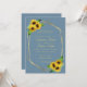 modern and romantic watercolor sunflowers on a blush blue background with a faux gold geometric frame.