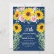 Sunflowers Pink Roses Navy Blue 30th Birthday Invitation