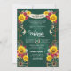 western charro beautiful rustic theme for quinceanera or birthday celebration. This design features bright yellow sunflowers and rich red roses, on a customisable emerald green background and rustic western accents. Fully customisable for any kind of event!