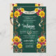 Sunflowers Red Rose Emerald Charro Quinceanera Invitation