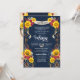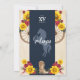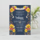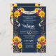 western charro beautiful rustic theme for quinceanera or birthday celebration. This design features bright yellow sunflowers and rich red roses, on a customisable navy blue background and rustic western accents. Fully customisable for any kind of event!