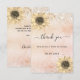 A rose gold and blush pink faux metallic looking background decorated with faux gold and silver glitter sparkles and rustic sunflowers. Personalise and add name(s) and a date on front.