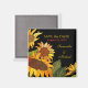 Colourful sunflowers designed on custom wedding Save-the-Date invitation magnets. Very easy to edit the wordings, typefaces, colours, and sizes of all the text when you personalise the product. (Matching wedding essentials are also available in my store).