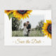 Big yellow gold sunflowers faux gold calligraphy script and frame making a modern rustic photo save the date wedding postcard. +++++++++ Easy to personalise with your names and text! ++++++++++ Suitable for floral summer or autumn fall / garden backyard rustic country, bohemian or farmhouse themed weddings.