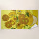 Sunflowers Vincent van Gogh. Still life on a yellow background. A bright bouquet of sunflower flowers stand in a vase. Reproduction of famous works of art images in the public domain.