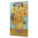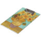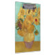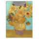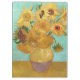 Sunflowers (1889) Vincent van Gogh.Still life on a blue background. A bright bouquet of sunflower flowers stand in a vase. Reproduction of famous works of art images in the public domain.