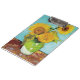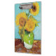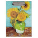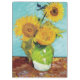 Sunflowers (1888) Vincent van Gogh. Still life on a blue background. A bright bouquet of sunflower flowers stand in a vase. Reproduction of famous works of art images in the public domain.
