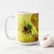 Sunflowers Vincent van Gogh. Still life on a yellow background. A bright bouquet of sunflower flowers stand in a vase. Reproduction of famous works of art images in the public domain.