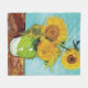 Sunflowers (1888) Vincent van Gogh. Still life on a blue background. A bright bouquet of sunflower flowers stand in a vase. Reproduction of famous works of art images in the public domain.
