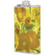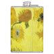 Sunflowers Vincent van Gogh. Still life on a yellow background. A bright bouquet of sunflower flowers stand in a vase. Reproduction of famous works of art images in the public domain.