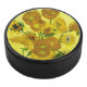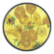 Sunflowers Vincent van Gogh. Still life on a yellow background. A bright bouquet of sunflower flowers stand in a vase. Reproduction of famous works of art images in the public domain.