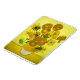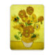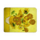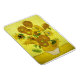 Sunflowers Vincent van Gogh. Still life on a yellow background. A bright bouquet of sunflower flowers stand in a vase. Reproduction of famous works of art images in the public domain.