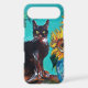 SUNFLOWERS WITH BLACK CAT IN BLUE TURQUOISE