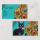 SUNFLOWERS WITH BLACK CAT IN BLUE TURQUOISE BUSINESS CARD