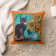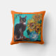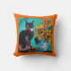 SUNFLOWERS WITH BLACK CAT IN BLUE TURQUOISE CUSHION