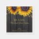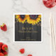 Rustic gold typography script Mr and Mrs wedding custom paper napkins featuring beautiful sunflowers on a dark brown barn wood background with string lights. Ideal for your night summer or autumn fall elegant rustic country outdoor backyard or farmhouse themed weddings, woes renewals, or couple's anniversaries.