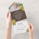 Rustic all in one wedding invitation with invitation, rsvp, and envelope in one. With sunflowers and a printed wood look and rustic fonts. Personalise with a photo!