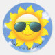 Sunglasses on yellow sun in sky with quote classic round sticker