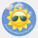 Sunglasses on yellow sun in sky with quote classic round sticker