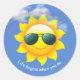 Sunglasses on yellow sun in sky with quote classic round sticker
