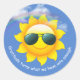 Sunglasses on yellow sun in sky with quote classic round sticker