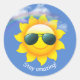 Sunglasses on yellow sun in sky with quote classic round sticker
