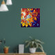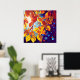 Artwork of sunlit autumn leaves with a bokeh depth of field background. The art is in an illustrative style. Rich shades of orange and yellow glow as sunlight streams through the delicate veins of the leaves, creating a luminous effect. The branches hold the vibrant foliage against a softly blurred background with shimmering bokeh lights. This artwork beautifully captures the intricate details and radiant beauty of autumn leaves in the golden light of the season. Up-close branches are adorned with leaves in fiery oranges and warm yellows, illuminated by the sun's rays that pierce through the foliage. The background dissolves into a dreamy haze of colour and light orbs. A piece that brings the beauty of autumn sunlight into your home. This artwork can be customised, printed, and or downloaded.