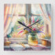 Sunlit Cottage Window Wildflowers Square Wall Clock