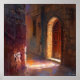 Step into a moment of historical elegance with Sunlit Doorway, an evocative art print capturing a warmly lit arched entrance nestled within aged stone walls. Golden light spills through the slightly open wooden door, casting a radiant glow across textured surfaces in rich reds, purples, and blues. A vintage lantern and barred window add depth and character, while the interplay of shadow and light evokes timeless mystery and Mediterranean charm. Perfect for adding warmth and sophistication to any interior.