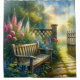 Step into a storybook moment with this enchanting garden scene, where soft golden sunlight filters through lush trees and spills across a cobblestone path leading to a welcoming open gate. Bursting with vibrant cottage blooms—dahlias, hollyhocks, foxgloves, and delphiniums—the garden brims with life and color, painted in soft pinks, sunny yellows, and deep corals that blend seamlessly with cool lavender and sky blues. A rustic wooden bench nestled among the flowers invites quiet reflection, while dappled light and painterly textures evoke a peaceful, whimsical mood. The overall style is dreamlike and romantic, steeped in cottagecore nostalgia and wrapped in the cozy serenity of an early morning bloom. AI generated artwork.