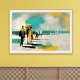 This elegant abstract artwork captures a quiet moment of everyday life bathed in warm, open light. Simplified human figures move gently across a wide, airy landscape, their forms loosely defined yet full of character. Soft shades of turquoise, cream, and sky blue blend with warm ochre and golden yellow, creating an atmosphere that feels calm, optimistic, and effortlessly modern.