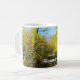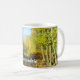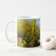 Here's an autumn mug presenting a luminous forest scene on a sunny afternoon, with clear blue skies overhead and trees adorned in an autumnal blend of yellow, green, and golden brown leaves. Personalise it with a name or an expression.