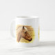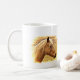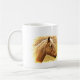 This mug features a beautiful golden brown horse backlit by the yellow sun. The image is mirrored on both sides.