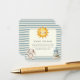This adorable 'Books for Baby' enclosure card features a whimsical watercolor design with a smiling sun and a fluffy bunny, perfect for a baby shower. The soft blue and cream stripes create a cheerful backdrop, while the text gently asks guests to bring a book instead of a card, to be signed and cherished for years to come. It's a sweet way to build a treasured library for the new arrival, making this a unique and heartfelt addition to your baby shower invitations.