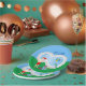 This fun Christmas in July paper plate makes a perfect summer party decor for a pool gathering. Make it a fun north pole themed extravaganza with Santa Claus in his swimming trunks next to a cool swimming pool and diving board. Jolly Saint Nick is drawn in a red bathing suit on this cool blue plates.