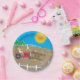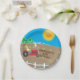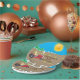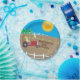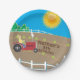 Children's Birthday party products with brightly coloured graphic art of a farmer in his tractor tending to his farm on a sunny day. Personalised with your child's name in the freshly ploughed field.