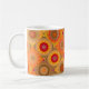 Mug with an abstract floral art pattern in quilt or patchwork style in warm sunny colours. This design is created from the images of flowers.