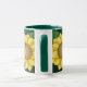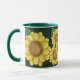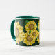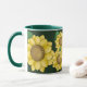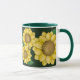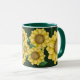 Yellow folk art flowers on a dark green background on this colourful mug design - makes your morning coffee taste twice as good!