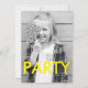 Fun Modern Design Birthday Party Invitation with personalised Photo saying PARTY on the front. You can customise further by changing yellow to any other colour you'd prefer by clicking the customise button and changing font and background colour.
