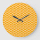 Sunny Golden Yellow White Ocean Waves Pattern Large Clock