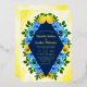 Sunny lemon wedding collection with blue wildflowers and roses with botanical greenery