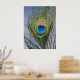 Neat close up picture of a peacock feather poster. The sun reflecting off the feather makes it sparkle.