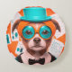 The aqua-hued, funny dog character illustration, complete with its quirky orange glasses, symbolizes playful friendship and joy designed especially for kids. This abstract orange puppy dog not only brings smiles with its whimsical charm but also embodies kindness and companionship, making it a delightful design perfect for children's cushions.