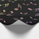 Sunny Rainbow Musical Notes Wrapping Paper. Colourful music notes in blue, green, purple, pink, gold and shades in between cascading down a black page. A festive musical touch for the holidays or any special occasion, especially when wrapping for your favourite musician. #music #musician #notes #wrapping #holidays