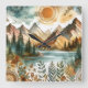 Sunny Rustic Boho Nature Pattern Mountain Lake Square Wall Clock