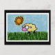 Funny little yellow sheep with a pink face, standing out in a field of dandelions on a bright and sunny day. Original digital cartoon art by Taylor Addams. Ewe gonna love it!