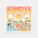 Bright and colourful scene offers a spectacular view of Southern California - wacky characters frolic on the beach and desert of SoCal showcasing Los Angeles, San Diego, Orange County, Santa Barbara, Riverside, Palm Springs, Anza Borrego and Joshua Tree parks as well as the border cities of Tijuana, Tecate and Mexicali. This charming scene has it all – a surfer hangs ten while a killer whale leaps out of the water, zoo animals greet the tourists, a muscular beach couple both flex to impress as a T-Rex roars a challenge and a tank moves into position and much more…