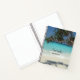 A personalised spiral notebook with a beautiful sunny photograph. Turquoise tropical blue ocean waters, with a white sandy beach. A solo tropical tree provides a nice place to relax and enjoy this scenic idyllic spot.